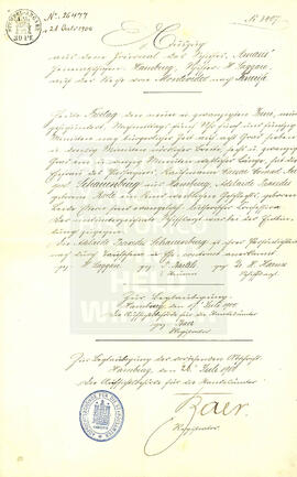 Emitido por Aufsichtsbehörde für die standesämter Hamburg. Manuscrito en tinta negra, incluye timbres y firmas oficiales