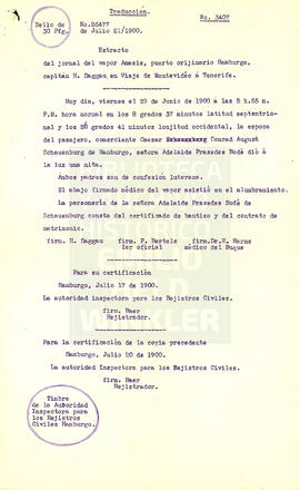 Traducción de Extracto de Certificado de Nacimiento Erna Adelaide Oceana Schauenburg